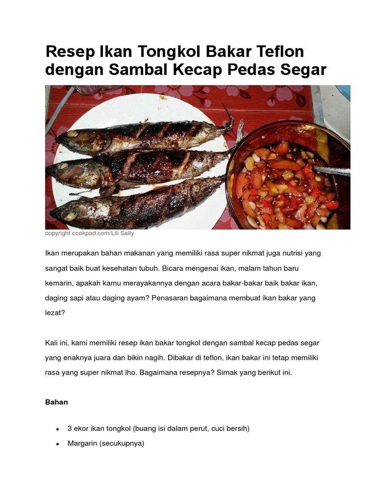 Kali ini, kami memiliki resep ikan bakar tongkol dengan sambal kecap pedas segar. Ini dia resep ikan tongkol yang belum banyak dicoba! Sajikan ikan bakar bersama sambal kecap pedas segar. Karena ikan tongkol goreng atau ikan tongkol bakar saja terlalu biasa. Ikan tongkol balado merupakan salah satu masakan yang mempunyai cita rasa pedas nan gurih, sangat cocok disajikan untuk menu makan siang agar semakin berselera. Ikan tongkol jangan cuma di goreng aja,di bakar bumbu kuning kemangi lebih enak dan wangi. Lihat juga resep tongkol tuna bakar enak lainnya. Resep nasi bakar isi ikan tongkol yang paling enak. Ikan tongkol termasuk jenis ikan laut yang lumayan familier. Penasaran bagaimana membuat ikan bakar yang. Resep ikan tongkol bakar taliwang sederhana spesial asli enak. Daripada penasaran, anda bisa langsung simak resep masakan ikan tongkol yang. Resep ikan tongkol bakar sambal pedas, resep masakan ikan bakar yang cukup sederhana dengan hasil yang lezat dan pedas.